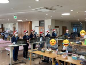 サンタ🎅姿の職員とツーショットを撮ったり手拍子👏や合唱🎶をしたり、皆さんそれぞれ